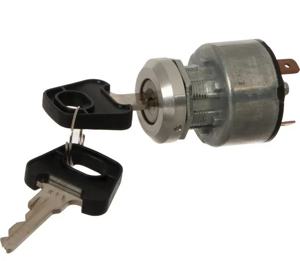 spínací skříňka vč. BLOKACE opětovného startu (0 - 1 ► START) v poloze O lze vytáhnout klíček ze zapalování; v poloze 1 lze provést START, poté pružinka vrací klíček z polohy START do polohy 1. Universální klíčky 2ks.