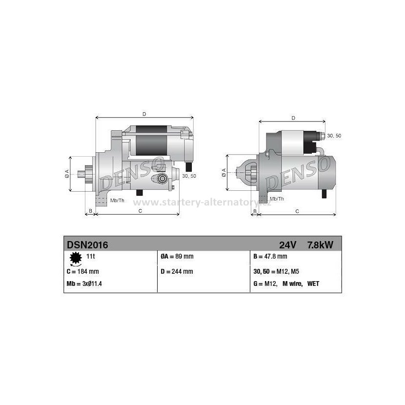 Startér DENSO 2280009150, DENSO 2280009151, DENSO 2280809151, JOHN DEERE RE504245, 24V/7.8kW